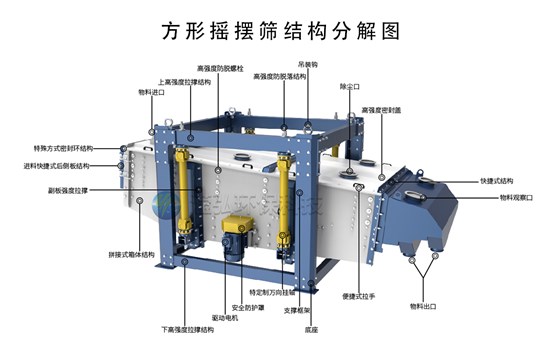 單純追求篩分精度會(huì)犧牲產(chǎn)量為代價(jià),而追求大產(chǎn)量又會(huì)使得精度下降,方型搖擺篩是針對(duì)上述問(wèn)題而專(zhuān)門(mén)設(shè)計(jì)的一種具有高精度大產(chǎn)量的高效篩分設(shè)備,通過(guò)方型精密搖擺篩將振動(dòng)器發(fā)生振動(dòng)加搖擺運(yùn)動(dòng),傳至篩面,從而使物料在篩機(jī)前部迅速分散,從而達(dá)到高效篩分之目的。